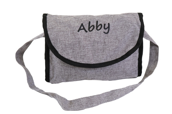 Geef jouw poppenwagen een persoonlijk tintje! Het is mogelijk om de luiertas van jouw pop te laten bedrukken met je eigen naam. De naam komt er in witte letters op te staan. Er kunnen maximaal 10 karakters ingevoerd worden. De luiertas biedt voldoende ruimte voor flesjes en luiers voor de pop. Hang hem over de poppenwagen heen of draag hem over je schouder.