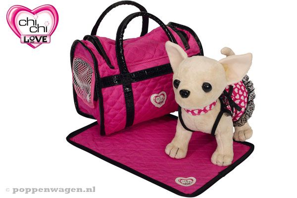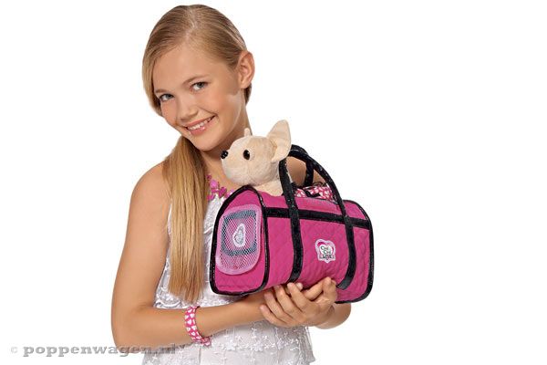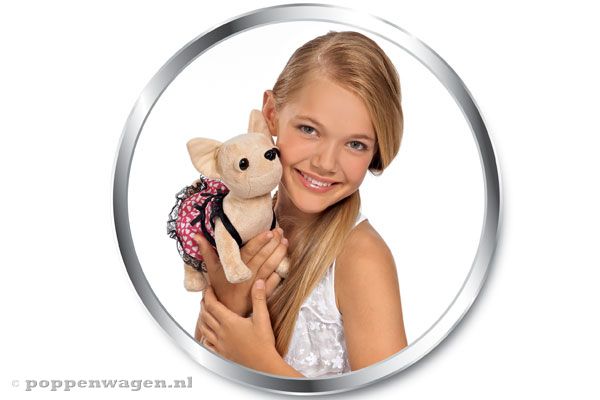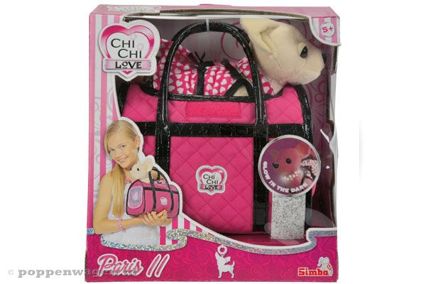 Paris II hondje in tas van Chi chi Love. Neem dit schattige chiwawa hondje overal mee naar toe in het roze handtasje. Het zachte pluche hondje heeft uiteraard een mooi jurkje aan zoals het hondje van Paris Hilton ook altijd heeft. In het donker geeft het jurkje en de halsband licht.