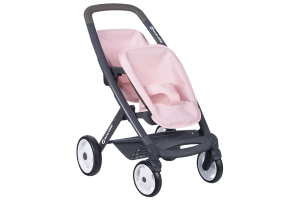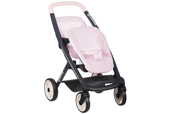 Niet één pop, maar twee poppen passen er in deze tweeling buggy van Smoby! De poppen zitten gezellig achter elkaar. Je kunt de zitting verstellen: de poppen kunnen naar voren kijken of naar achteren. De maximale maat van de poppen mag 42 cm zijn. De duwstang heeft een hoogte van 64 cm. De buggy is voorzien van zwenkwielen aan de voorkant en een boodschappenmand. Geschikt voor poppenmoeder vanaf 3 jaar.