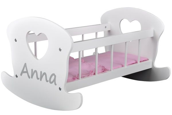 Wieg je babypop in slaap in dit mooie roze poppenbedje van Woodtoys. Op de zijkant van het bedje zijn vlinders geschilderd en het bedje wordt geleverd met roze kussentje. De afmeting is 46x28x34 cm. Geschikt voor poppen tot circa 42 cm en voor poppenmoeders vanaf 3 jaar.